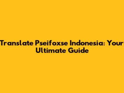 Translate Pseifoxse Indonesia: Your Guide