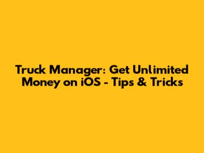 Truck Manager: Get Unlimited Money On IOS - Tips & Tricks