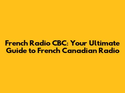 Tune In: French Radio CBC - Your Ultimate Guide
