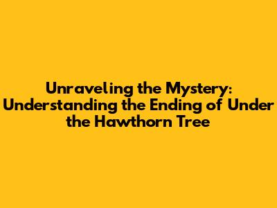 Hey everyone, let's dive deep into the much-talked-about ending of 'Under the Hawthorn Tree'. This novel, guys, has a way of sticking with you, and its conclusion is no exception. We're going to break down all those lingering questions you might have, explore the fates of your favorite characters, and really get to the heart of what the author was trying to convey. So, grab your favorite beverage, get comfy, and let's dissect this ending piece by piece. We'll be touching on themes of love, loss, sacrifice, and the enduring power of memory, all wrapped up in a narrative that's as beautiful as it is poignant. The story, as many of you know, follows the tumultuous lives of its characters against a backdrop that is both charming and challenging. The ending, in particular, is designed to make you think and feel, and it definitely succeeds on both fronts. We'll be exploring the interpretations of the ending, discussing whether it's a happy one, a sad one, or something in between, and what it all means for the overall message of the book. Get ready for a thorough analysis that will hopefully leave you with a clearer picture and a deeper appreciation for this incredible story. We'll also look at how the ending ties up loose ends, or perhaps deliberately leaves some frayed, and what that says about the nature of storytelling and life itself. It’s a journey we’re taking together, so don't hesitate to share your own thoughts and interpretations as we go. The beauty of a great ending is that it can spark conversation, and that's exactly what we aim to do here. We want to celebrate the richness of this novel and ensure that its final moments resonate with you long after you've finished reading.