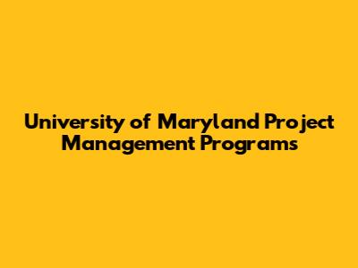 University Of Maryland Project Management Programs
