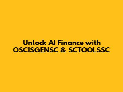 Unlock AI Finance With OSCISGENSC & SCTOOLSSC
