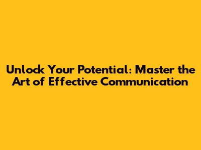 Unlock Your Potential: Master The Art Of Effective Communication
