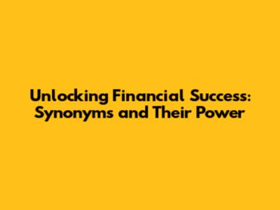 Unlocking Financial Success: Synonyms And Their Power