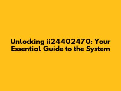 Unlocking Ii24402470: Your Essential Guide To The System