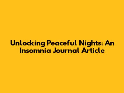 Unlocking Peaceful Nights: An Insomnia Journal Article