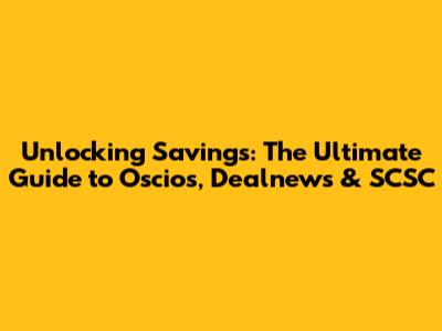 Unlocking Savings: The Ultimate Guide To Oscios, Dealnews & SCSC
