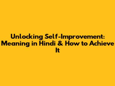Unlocking Self-Improvement: Meaning In Hindi & How To Achieve It