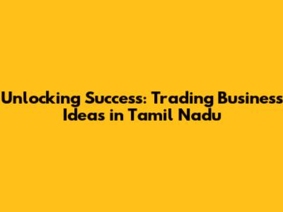 Unlocking Success: Trading Business Ideas In Tamil Nadu