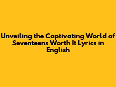 Hey everyone! Are you ready to dive deep into the amazing world of Seventeen's music? Today, we're going to explore the English lyrics of their song "Worth It." This track isn't just a collection of words and melodies; it's a journey filled with emotions, passion, and the signature energy that makes Seventeen so special. We're going to break down the lyrics, dissect the themes, and see what makes this song resonate so deeply with so many people. So grab your headphones, get comfy, and let's get started!