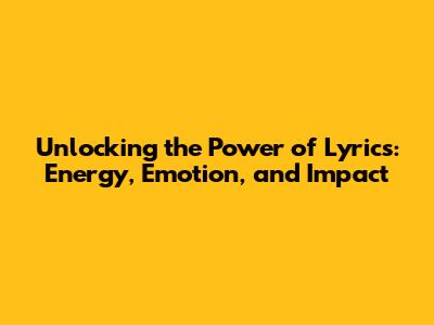 Unlocking The Power Of Lyrics: Energy, Emotion, And Impact
