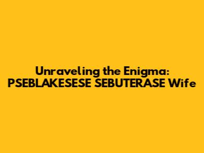 Unraveling The Mystery: PSEBLAKESESE SEBUTERASE Wife