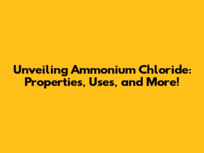 Unveiling Ammonium Chloride: Properties, Uses, And More!