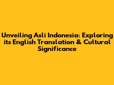 Unveiling 'Asli Indonesia': Its English Translation & Cultural Significance