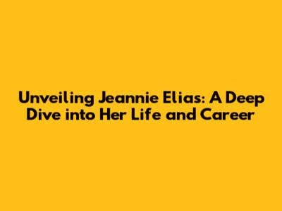 Unveiling Jeannie Elias: A Deep Dive Into Her Life And Career