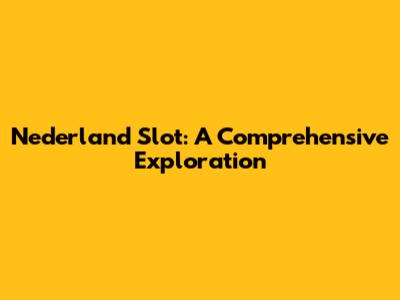 Unveiling Nederland Slot: A Deep Dive