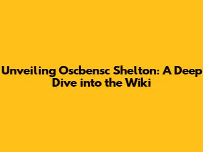 Unveiling Oscbensc Shelton: A Deep Dive Into The Wiki