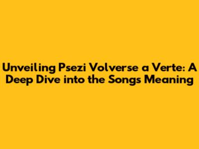 Unveiling 'Psezi Volverse A Verte': A Deep Dive Into The Song's Meaning