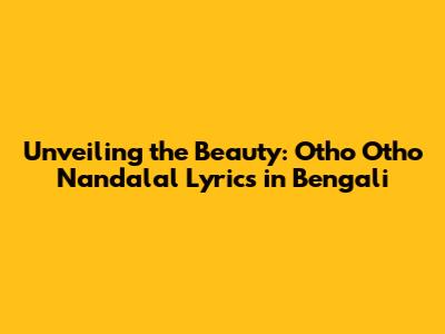 Unveiling The Beauty: 'Otho Otho Nandalal' Lyrics In Bengali