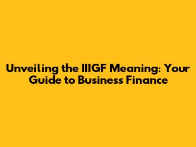 Unveiling The IIIGF Meaning: Your Guide To Business Finance