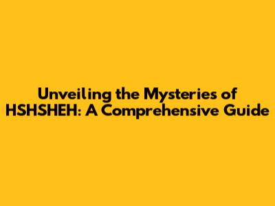Unveiling The Mysteries Of HSHSHEH: A Comprehensive Guide
