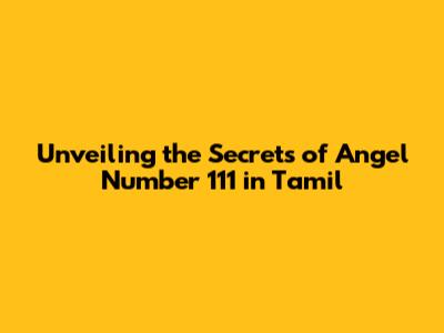 Unveiling The Secrets Of Angel Number 111 In Tamil