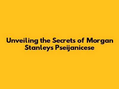 Unveiling The Secrets Of Morgan Stanley's Pseijanicese