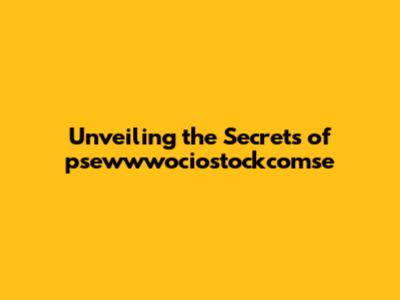 Unveiling The Secrets Of Psewwwociostockcomse