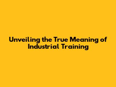 Unveiling The True Meaning Of Industrial Training