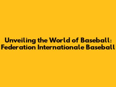 Unveiling The World Of Baseball: Federation Internationale Baseball