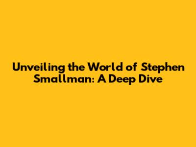 Unveiling The World Of Stephen Smallman: A Deep Dive