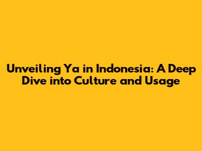 Unveiling 'Ya' In Indonesia: A Deep Dive Into Culture And Usage