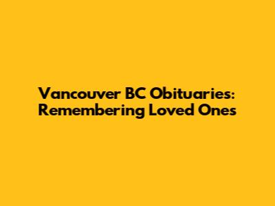 Unveiling Vancouver BC Obituaries: What You Need to Know