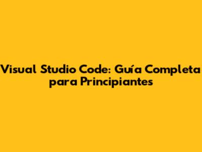 Visual Studio Code: Guía Completa Para Principiantes