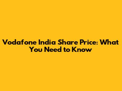 Vodafone India Share Price: What You Need To Know