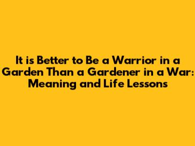 Hey guys! Ever heard the saying, “It is better to be a warrior in a garden than a gardener in a war”? It's a quote that makes you stop and think, right? At first glance, it might sound like some philosophical riddle, but trust me, it’s packed with wisdom that can apply to our everyday lives. Let's break it down and see what juicy insights we can extract from this thought-provoking statement.