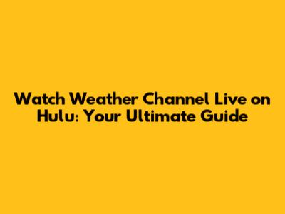 Watch Weather Channel Live On Hulu: Your Ultimate Guide