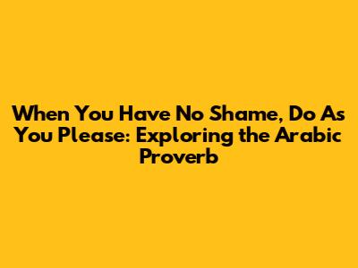 When You Have No Shame, Do As You Please: Exploring The Arabic Proverb