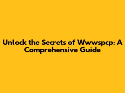 Unlock the Secrets of Wwwspcp: A Comprehensive Guide