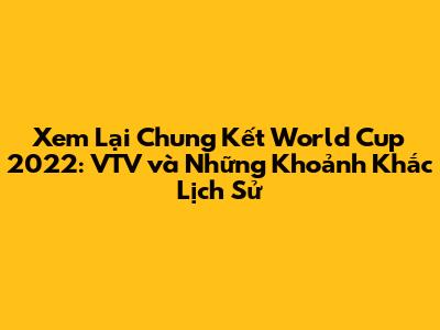 Việc xem lại trận chung kết World Cup 2022 VTV là một trải nghiệm tuyệt vời dành cho những người yêu bóng đá. Bạn sẽ được sống lại những khoảnh khắc lịch sử, những pha bóng đẹp mắt, và những cung bậc cảm xúc khác nhau. Bài viết này đã cung cấp cho bạn những thông tin cần thiết về việc xem lại trận chung kết World Cup 2022 VTV, bao gồm cách xem, phân tích chuyên sâu, và những khoảnh khắc đáng nhớ nhất. Hy vọng rằng bạn sẽ có những giây phút thư giãn và thú vị khi xem lại trận đấu này.