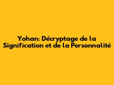 Hey les amis! On va plonger dans le monde fascinant du prénom Yohan. Vous vous êtes déjà demandé ce que ce prénom populaire révèle sur ceux qui le portent? On va décortiquer ensemble la signification, la personnalité, et tout ce qui fait de Yohan un prénom si spécial. Préparez-vous à découvrir des infos croustillantes et à mieux comprendre les Yohan de votre entourage ou, pourquoi pas, vous-même!