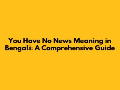 You Have No News Meaning In Bengali: A Comprehensive Guide