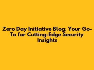 Zero Day Initiative Blog: Latest Security Insights