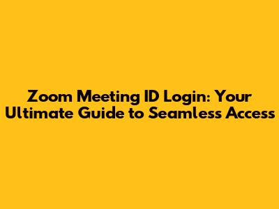Zoom Meeting ID Login: A Complete Guide